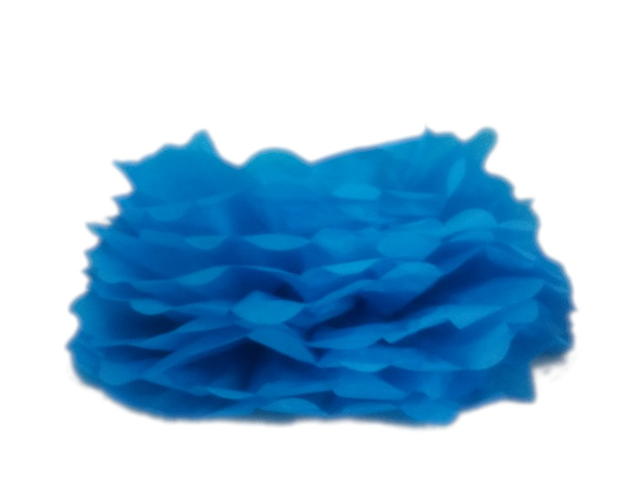 Para formar el centro de mesa con la flor turquesa y el globo, se monta primero la flor y el globo hinchado se ata con un hilo y con el mismo hilo, se ata al centro de la flor.